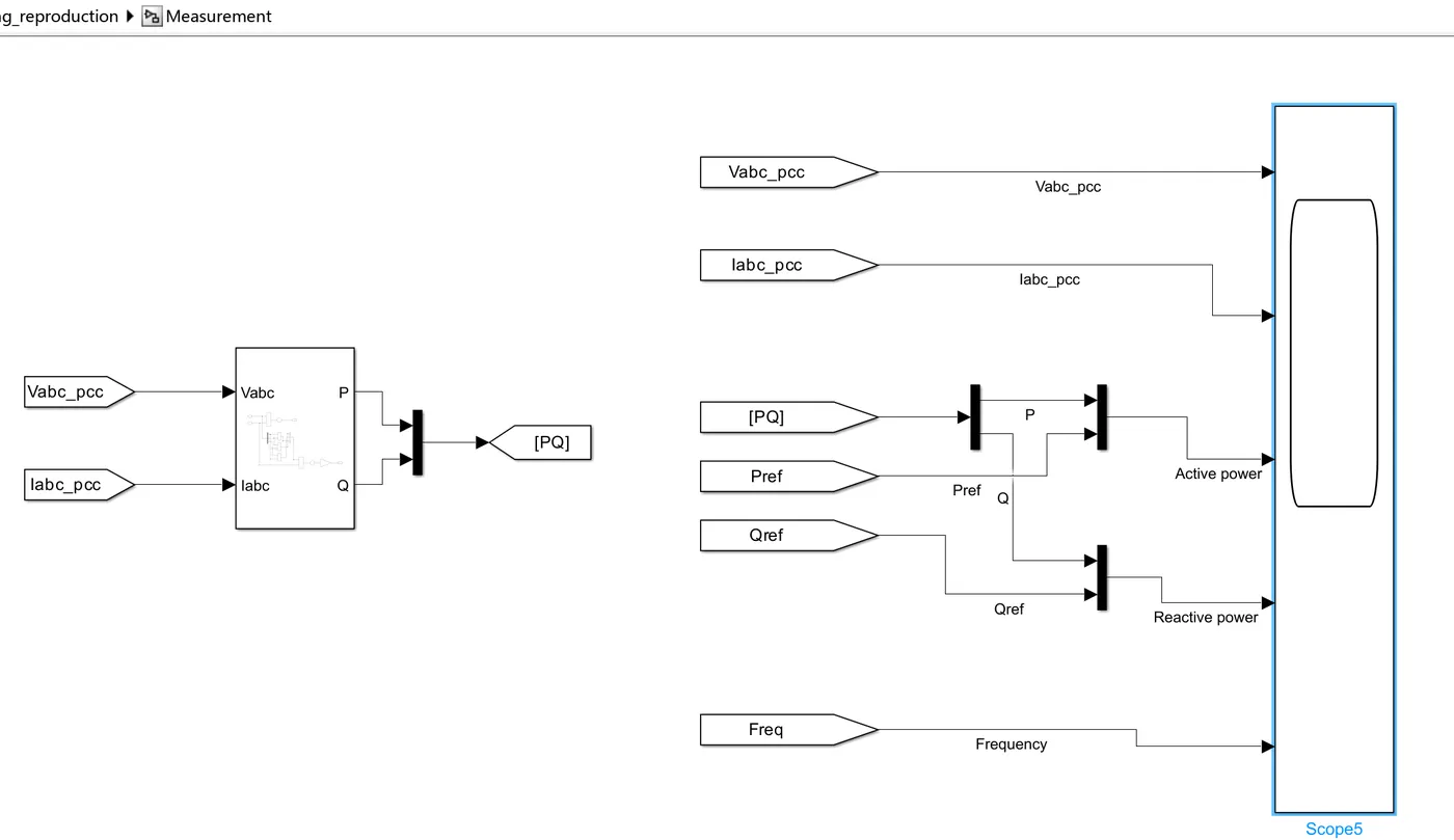 - 扰动施加模块:通过“690 V”电压源模块实现电压跌落(30%幅值)、频率阶跃(±0.5 Hz)及相位跳变(±10°)。