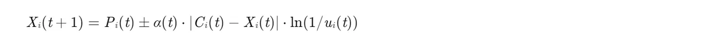 其中,Pi(t)为局部吸引子,α(t)为收缩-扩张系数,ui(t)为均匀分布随机数。该模型通过概率性搜索提升全局探索能力,但均匀分布的尾部概率密度较低,限制了远距离跳跃能力。