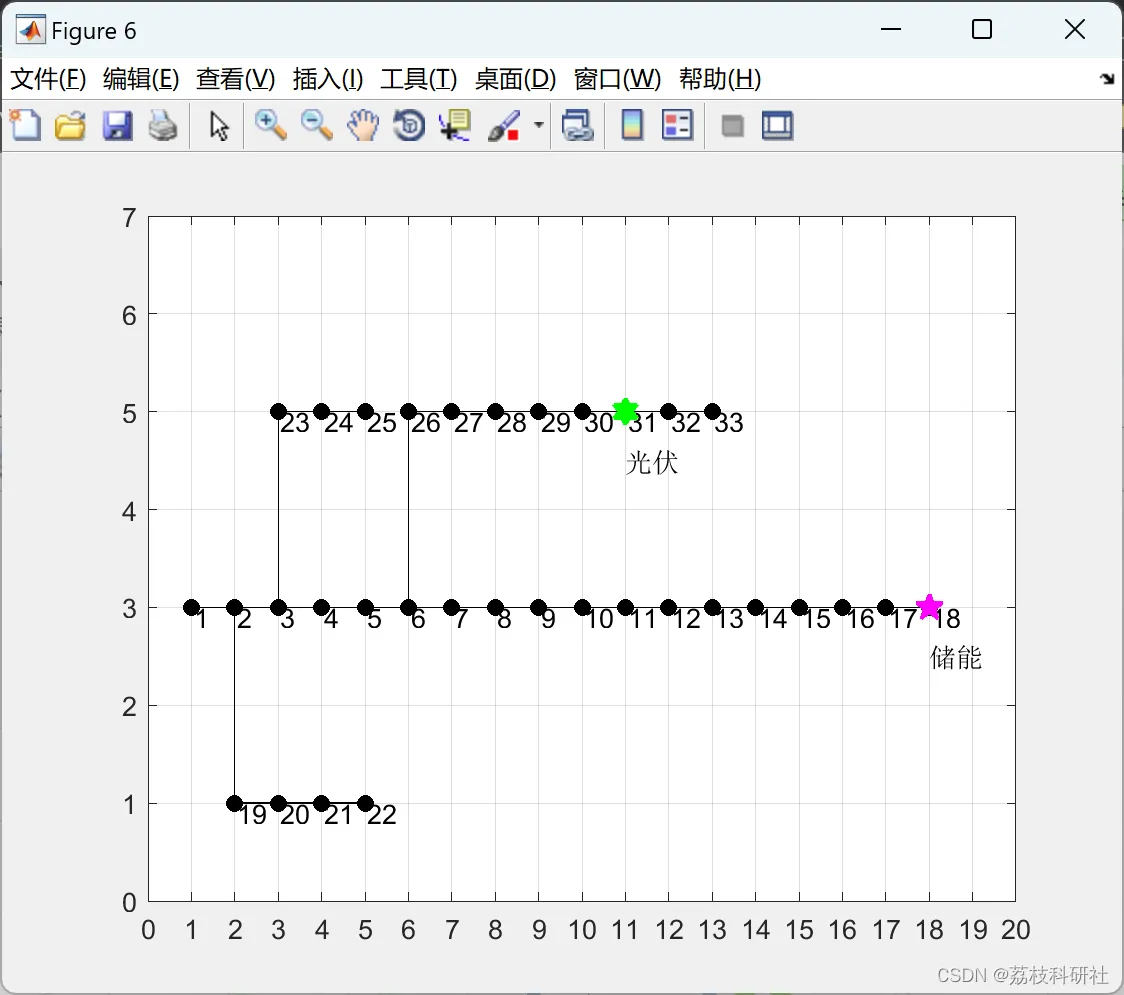 - 拓扑结构:由33个节点和37条支路组成,呈辐射状结构,基准电压为12.66 kV,总负荷为3715 kW + j2300 kVar。