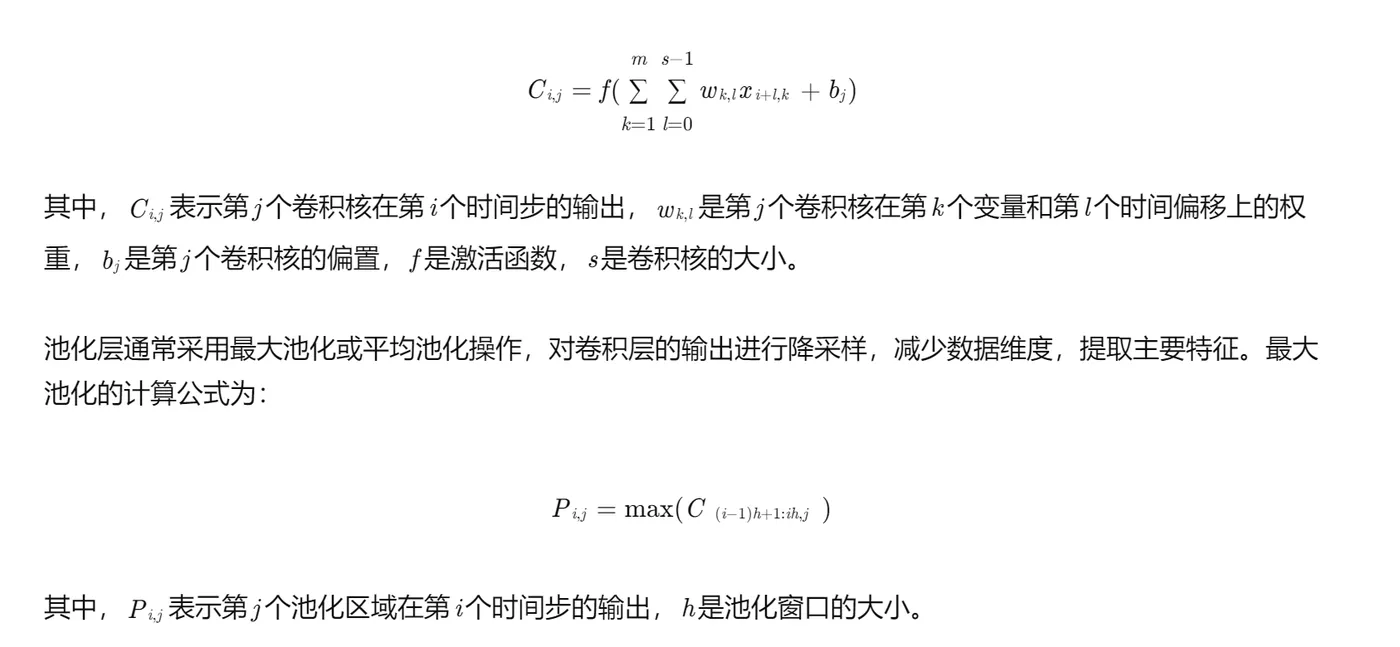 CNN模块主要由卷积层和池化层组成。卷积层通过卷积核在时间维度上滑动,对输入的多变量时间序列数据进行卷积操作,提取局部特征。设输入的多变量时间序列数据为X=[x1,x2,...,xn],其中xi∈Rm表示第i个时间步的m个变量值。卷积层的输出C可以通过以下公式计算: