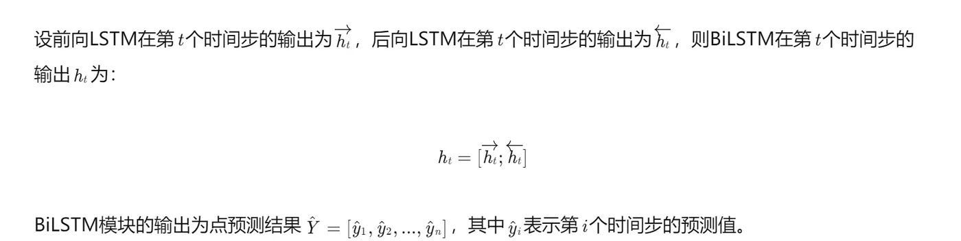 BiLSTM模块由前向LSTM和后向LSTM组成。前向LSTM从序列的起始位置开始处理数据,捕捉过去的信息;后向LSTM从序列的末尾位置开始处理数据,捕捉未来的信息。将前向LSTM和后向LSTM的输出进行拼接,得到BiLSTM的最终输出。