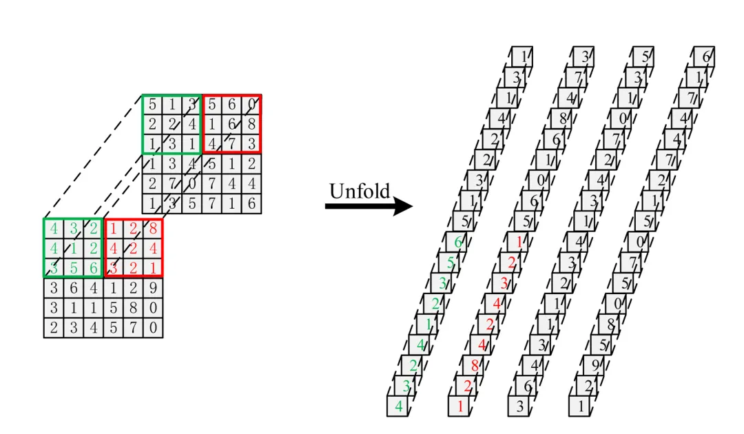 - 通道扩展:通过1×1分组卷积(groups=in_channel)将特征通道数扩展至in_channel×kernel_size²,生成感受野权重矩阵;