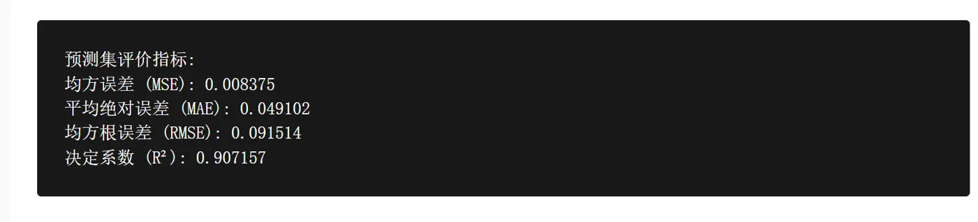 评估指标包括均方误差(MSE)、平均绝对误差(MAE)、均方根误差(RMSE)和决定系数(R²)。