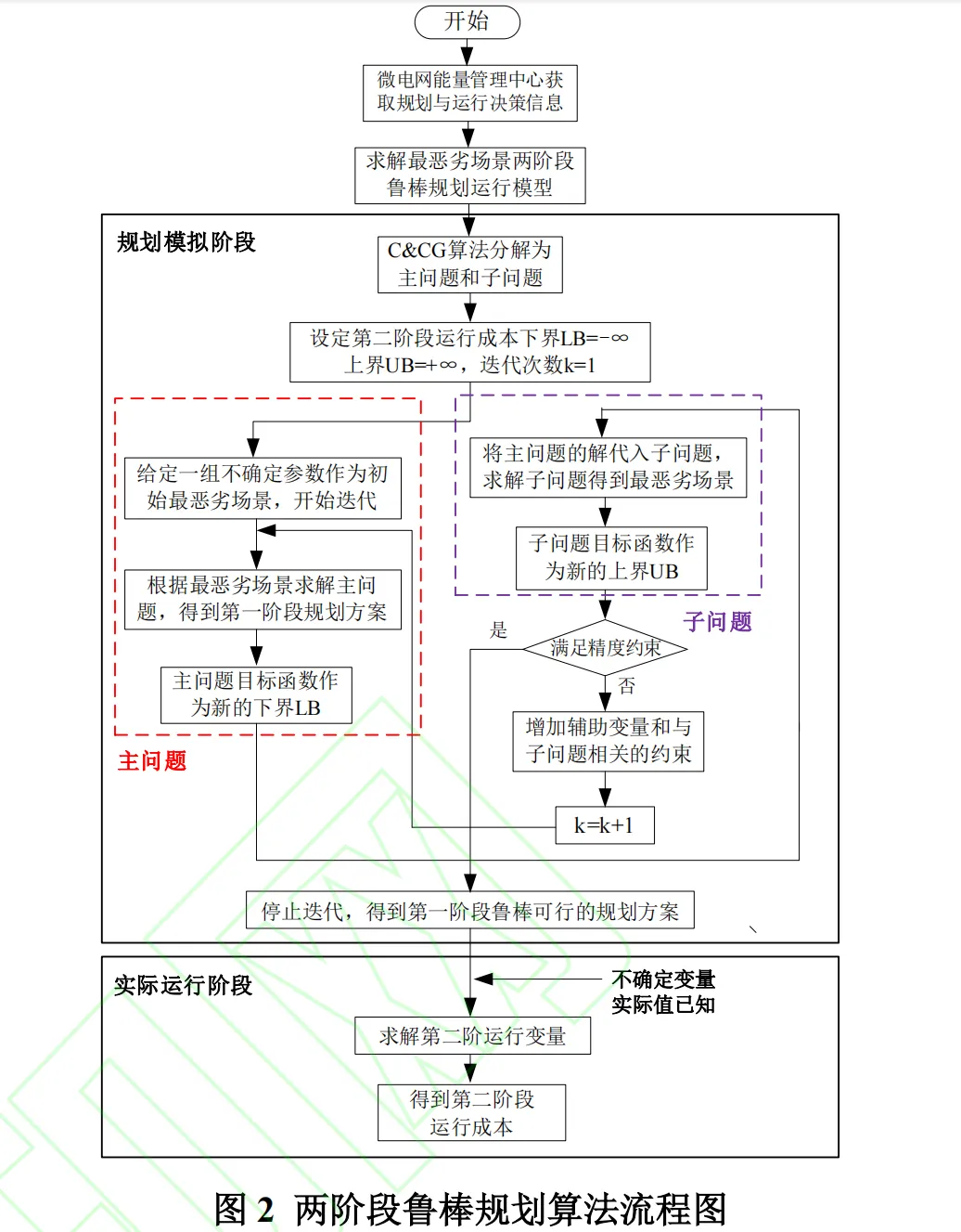 本文含数据中心的微网两阶段鲁棒规划算法的流程图如图 2 所示:
