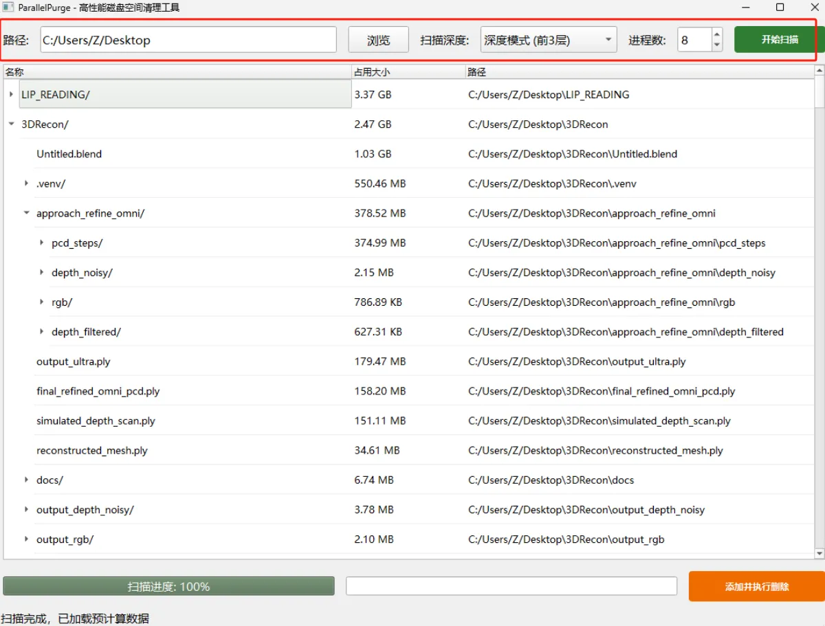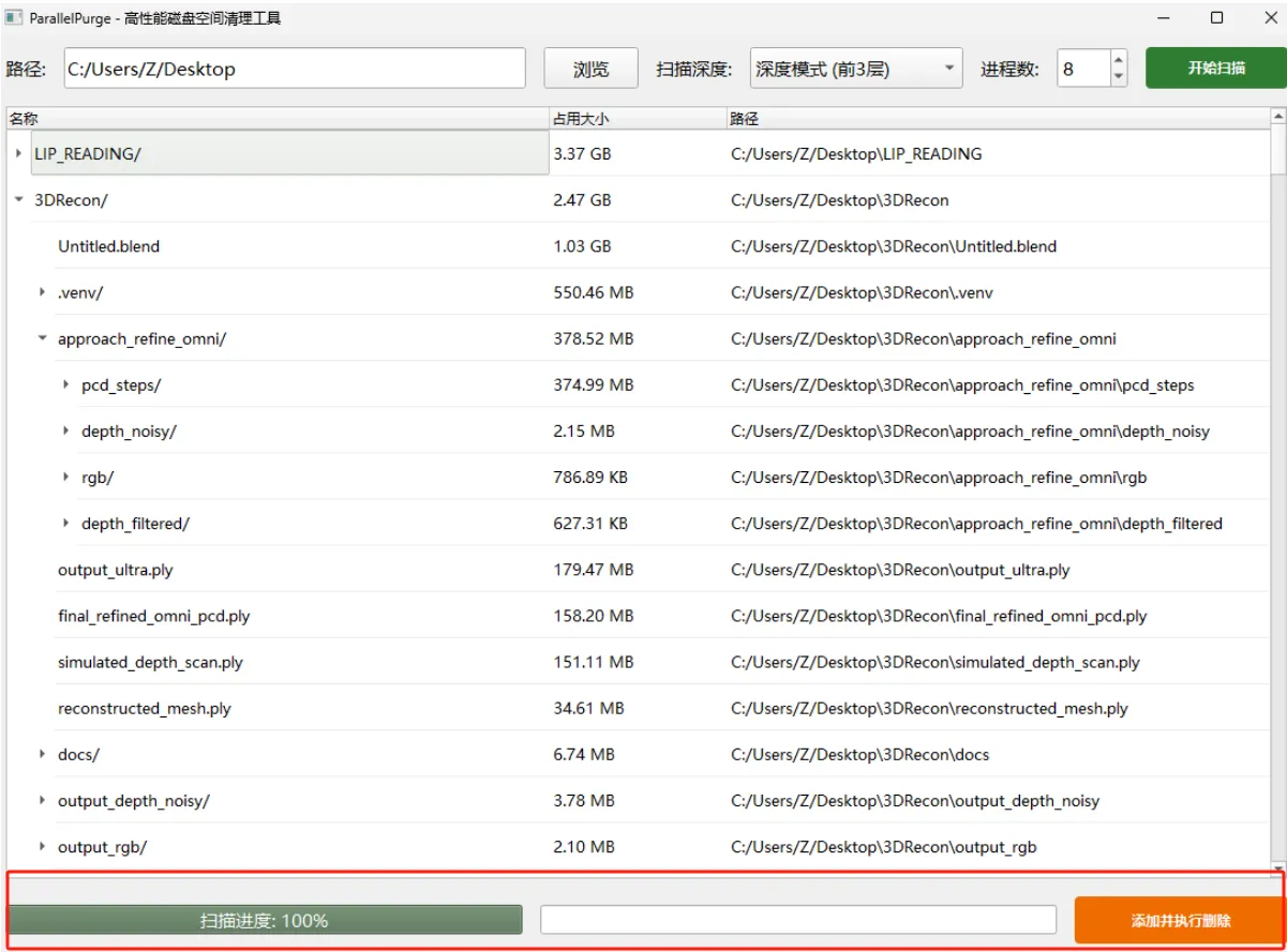 - 🚀 多进程加速:利用多核CPU并行处理,扫描/删除速度远超单线程工具;