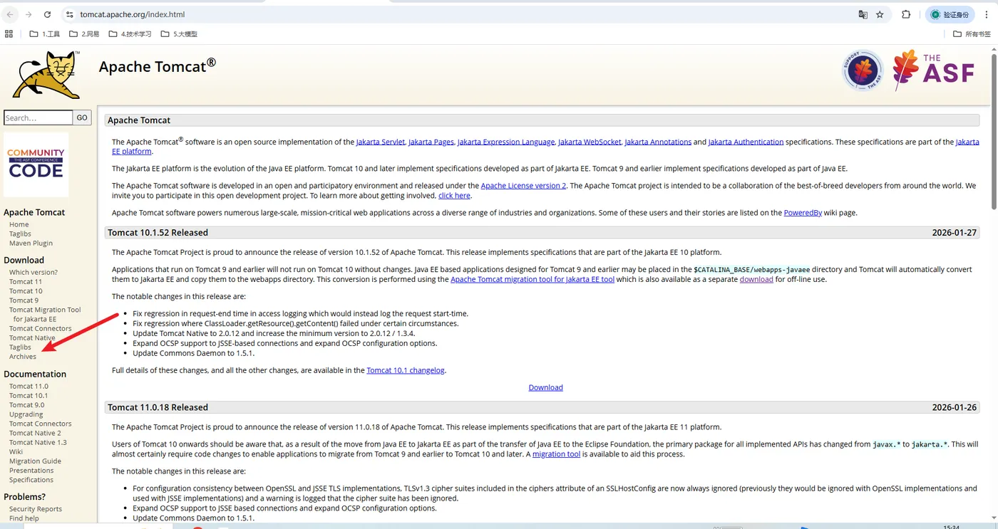 Tomcat 官网:https://tomcat.apache.org/index.html