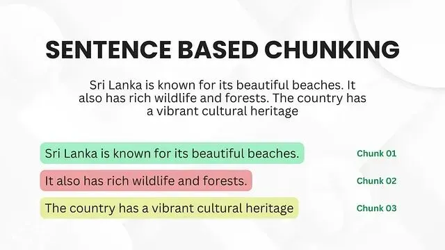 这种方式按完整句子来划分文本,而不是按任意长度一刀切。每个分块至少包含一个或多个完整的句子,语法完整,语义连贯。
