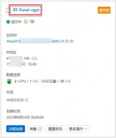 支付完成后,单击进入管理控制台。当服务器状态由准备中变为运行中,表示宝塔Linux面板已经部署成功。