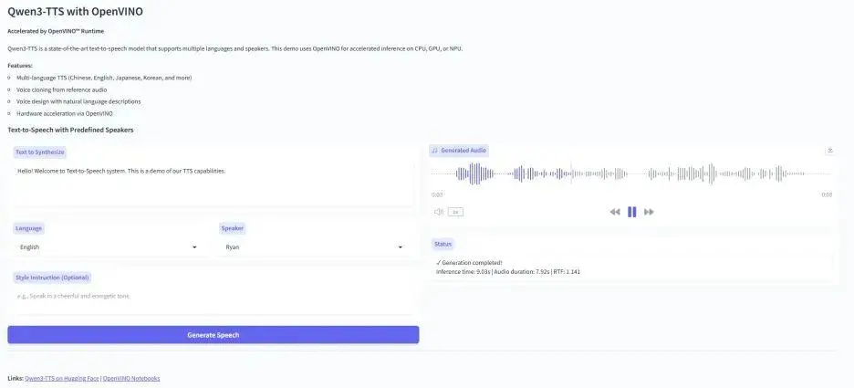 无论你是想打造智能客服、有声书,还是极具个性的 AI 助手,Qwen3-TTS + OpenVINO™ 都是你目前最值得尝试的技术组合!