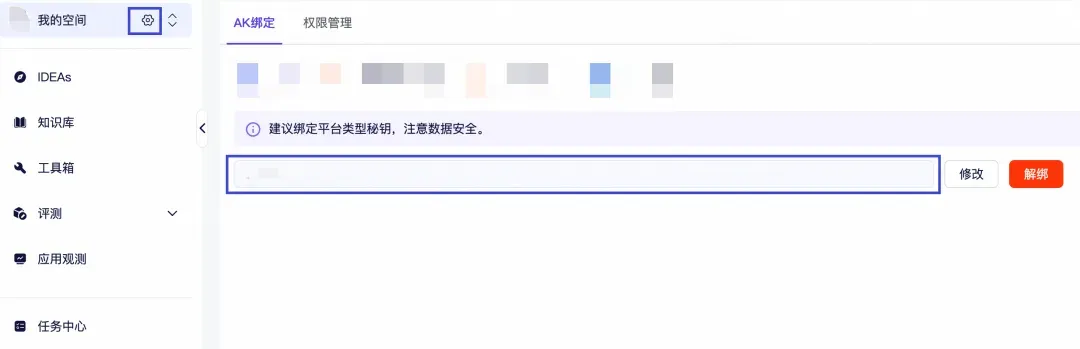 - AK绑定:在知识库设置中完成AK绑定配置;
