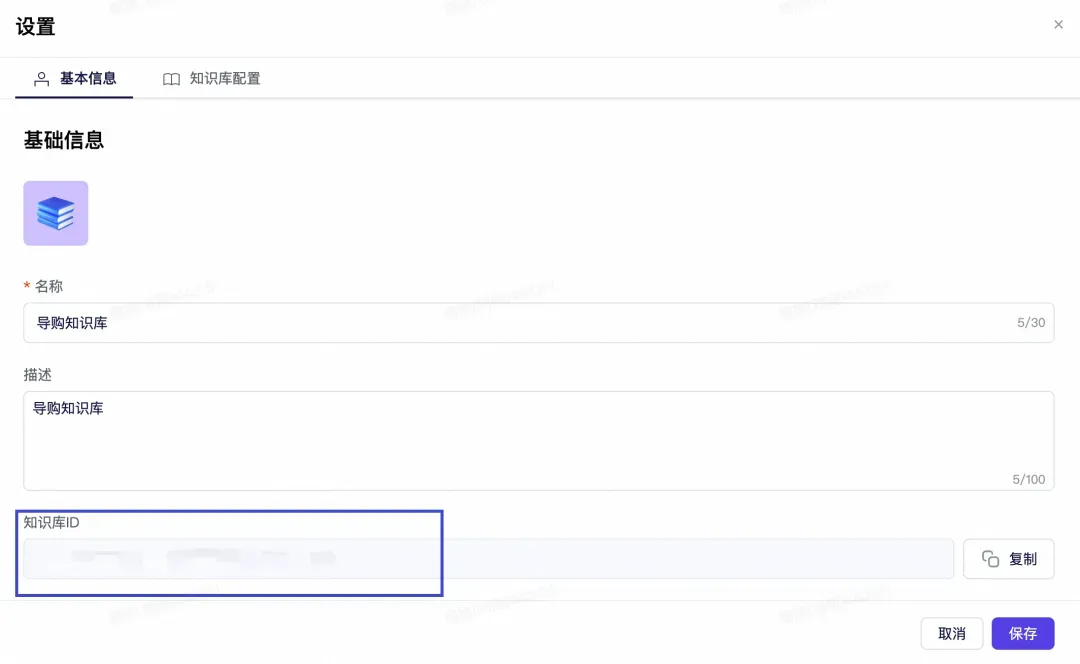 - 获取知识库ID:在知识库详情页面复制知识库唯一标识ID;
