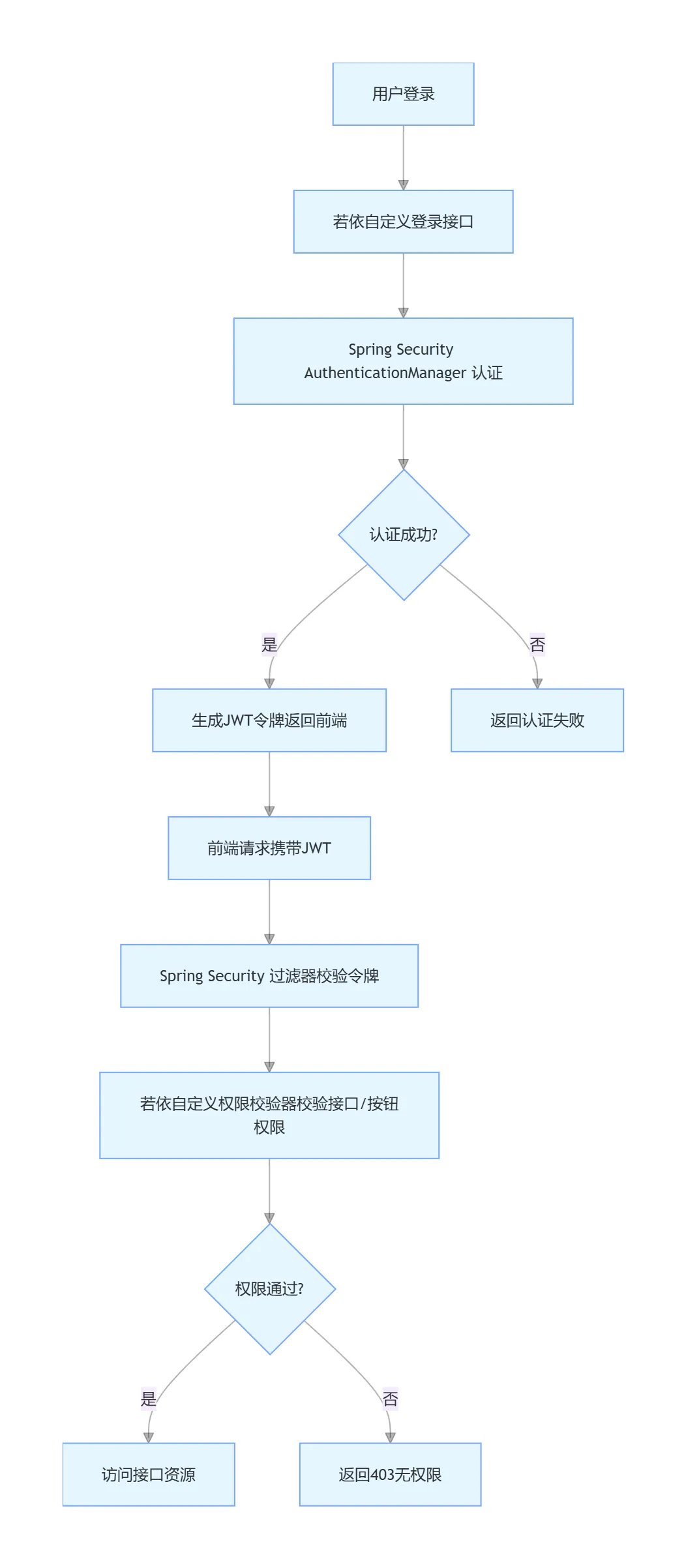 - 若依框架原生已深度整合 Spring Security,核心是通过扩展