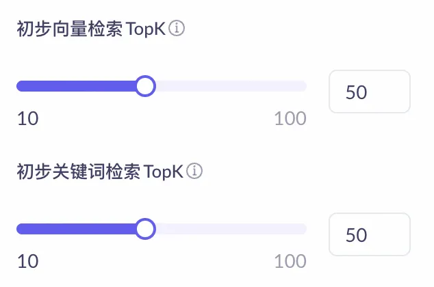 - 初步向量检索top k:控制基于语义相似性召回的相关切片数量(默认 50)