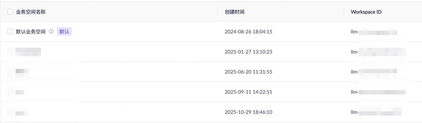 在业务空间管理确定标签绑定的业务空间Workspace ID(示例:llm-xxx)。