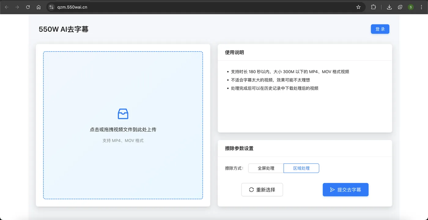 - 秒级上手: 核心流程被简化为**“上传视频 -> 框选字幕 -> 一键处理”**。