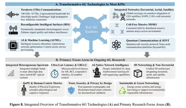 • 量子通信与生物纳米物联网(IoBNT):尽管尚处于早期阶段,量子安全协议和纳米级通信平台被认为是后6G发展的潜在方向。