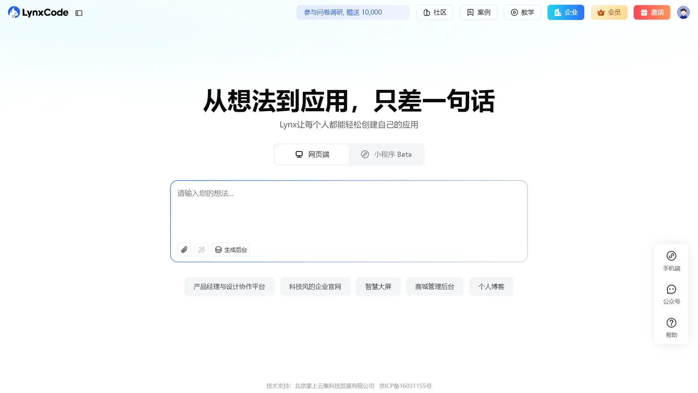 以 lynxcode 为例(lynxcode就是原来的lynx AI),它的逻辑就是将自然语言转译为前后端代码结构,并自动关联数据库关系。你输入一句话,它会同步生成前端页面、接口逻辑以及数据模型。