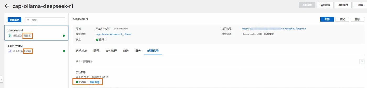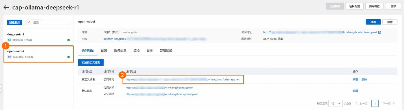 部署完毕后,点击Open-WebUI服务,在访问地址内找到公网访问单击访问。