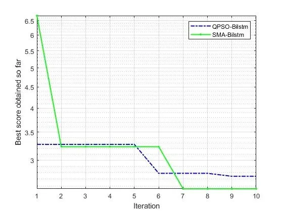 - 优化过程:将预处理后的数据输入到 BiLSTM 中,使用当前超参数进行训练,并计算预测结果与真实值之间的误差(如均方误差)作为目标函数值。黏菌算法或粒子群算法根据目标函数值更新超参数,得到新的超参数组合。重复这个过程,直到满足终止条件(如达到最大迭代次数、目标函数值收敛等)。