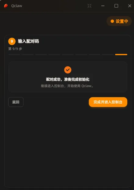 把配对码输入到 Qclaw 中。