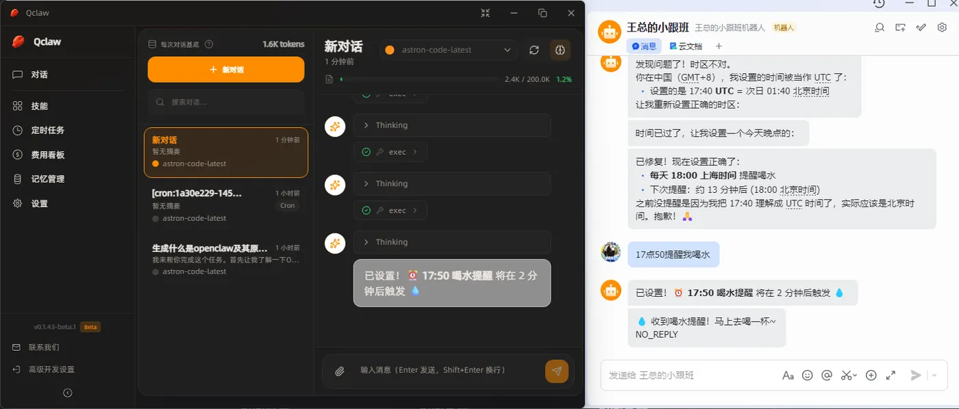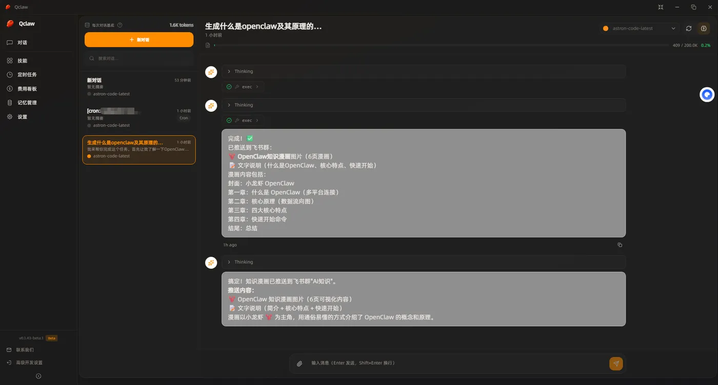 完成安装后,就可以开始使用 Qclaw 的核心功能。