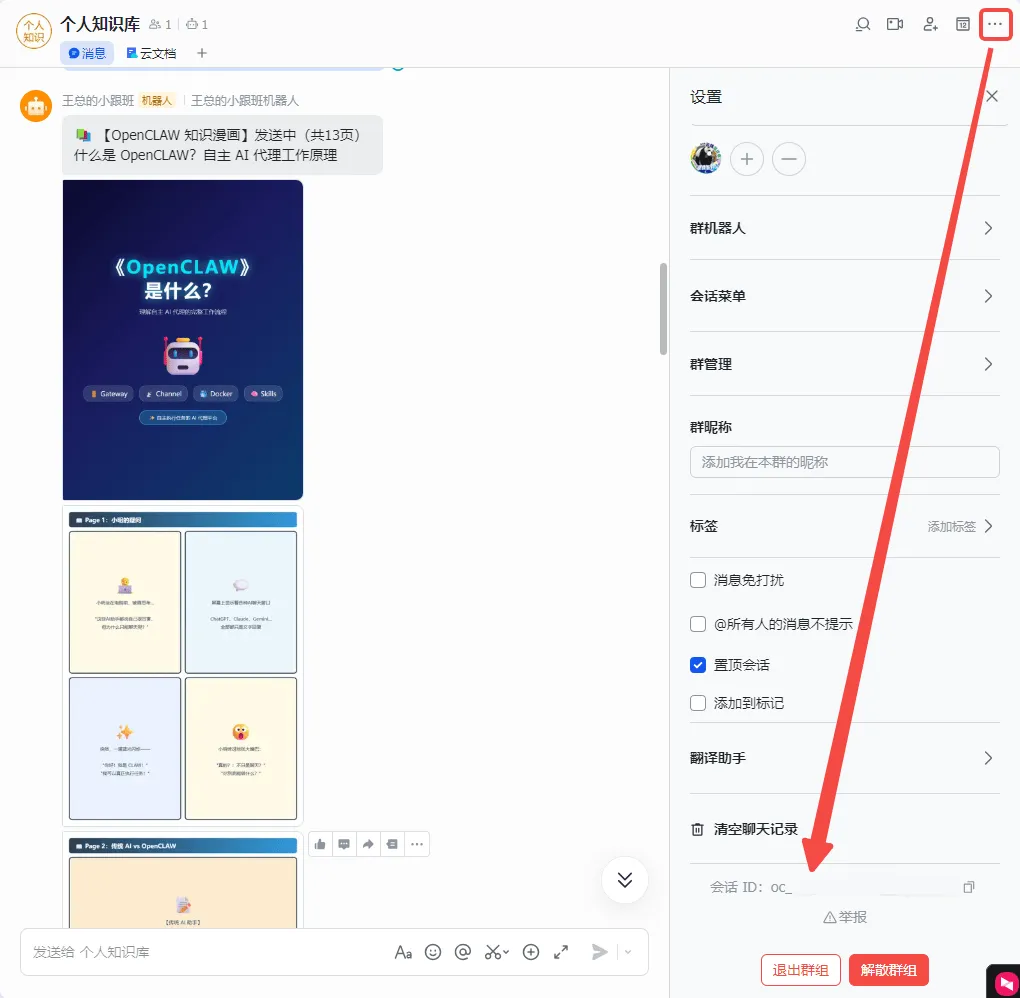 在群聊机器人中复制 会话ID