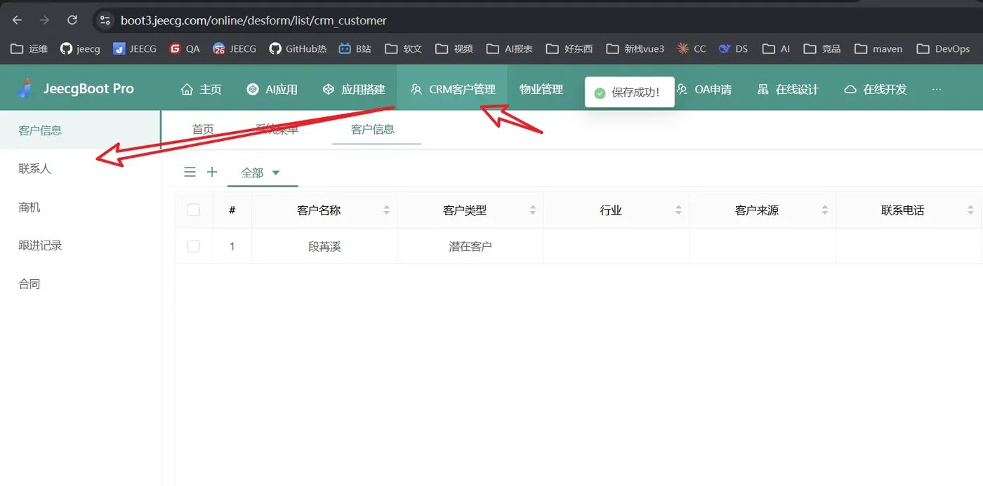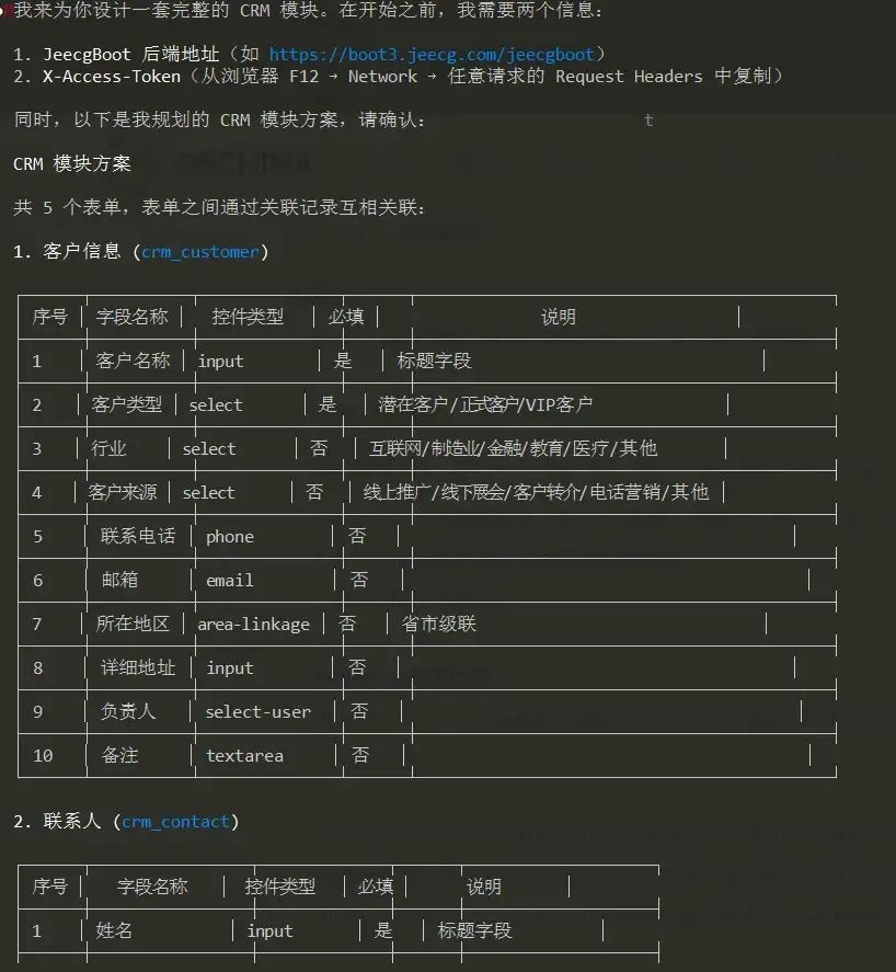 理论说再多不如实际看一遍。下面展示如何用一句话让 AI 自动构建一套完整的 CRM 模块。