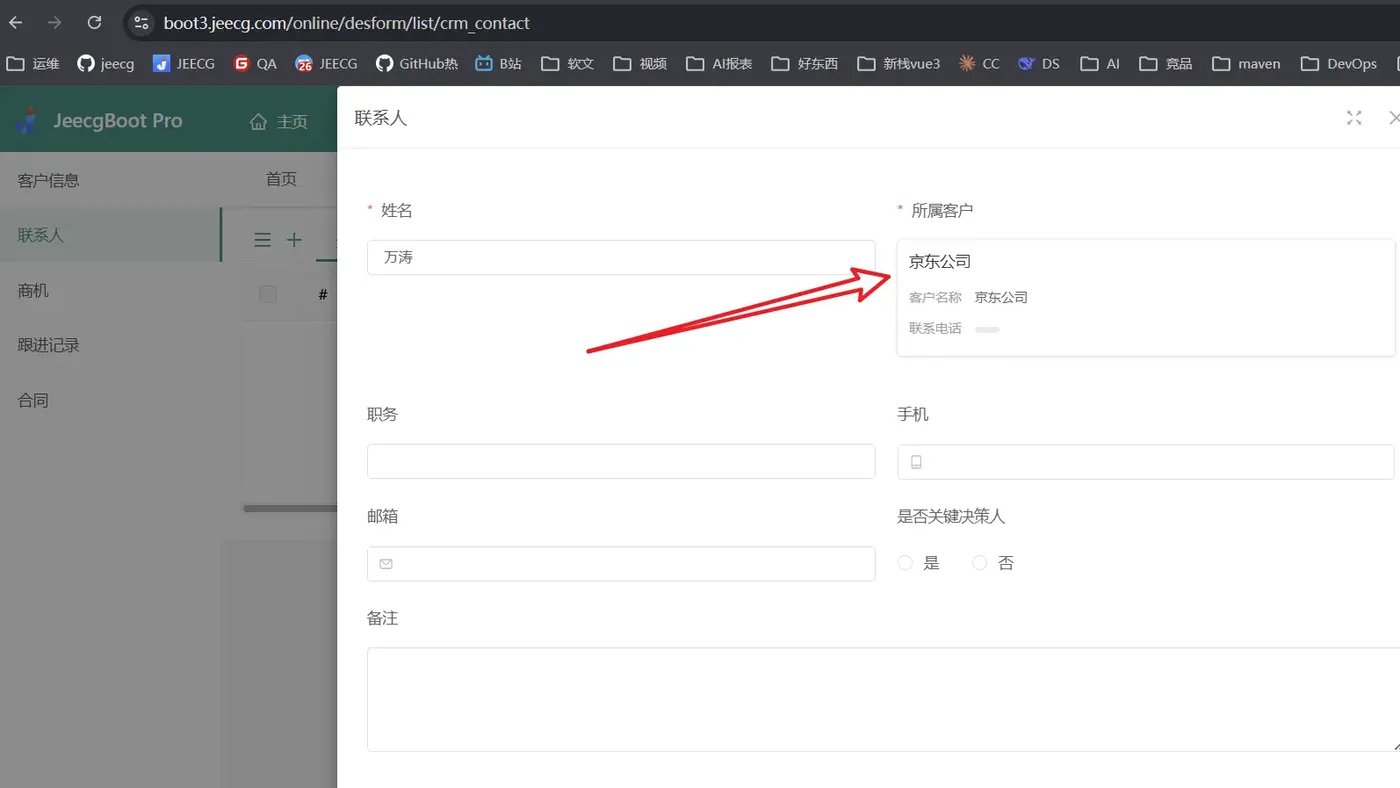 整个过程中,AI 会自动分析 CRM 系统所需的表单结构,推导出客户管理、联系人、商机跟踪等模块所需的字段和控件类型,然后逐一生成并创建: