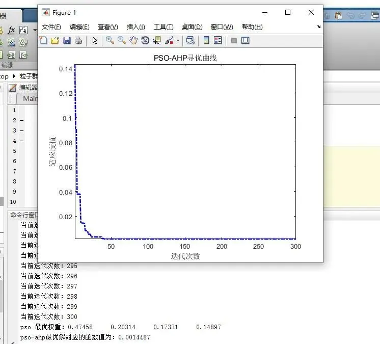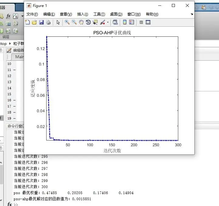 - 初始化粒子:随机生成一定数量的粒子,每个粒子的位置表示判断矩阵的一组元素值。