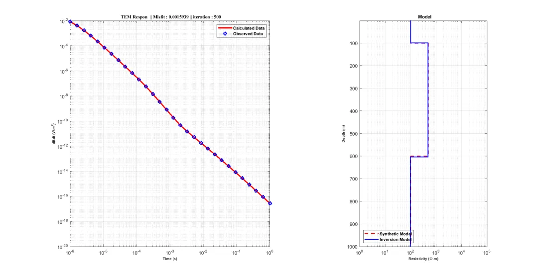 - 数据反演的意义 :TDEM 测量得到的是地面上的电磁响应数据,这些数据是地下多种地质因素综合作用的结果。数据反演的目的是根据这些观测数据,反推地下介质的电性参数分布,将其转化为地质人员能够理解和应用的地质模型。准确的反演结果对于地质解释、资源评估和工程决策至关重要。