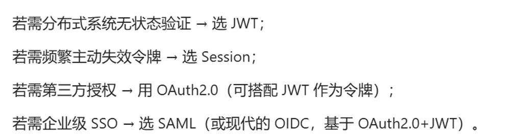 SAML 缺点:基于 XML,消息冗长,配置维护复杂,需专业知识;XML 解析开销大,大量请求影响性能;企业部署要调整网络、安全策略,成本高 。