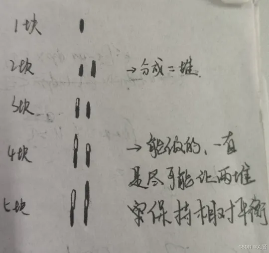为啥要分两堆->一直在动态的动态的维护,从第一块进入开始,一直在动态的维护两堆的平衡。