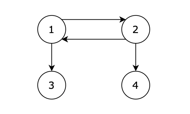 第一行包含两个正整数,表示节点数量 N 和边的数量 K。 后续 K 行,每行两个正整数 s 和 t,表示从 s 节点有一条边单向连接到 t 节点。