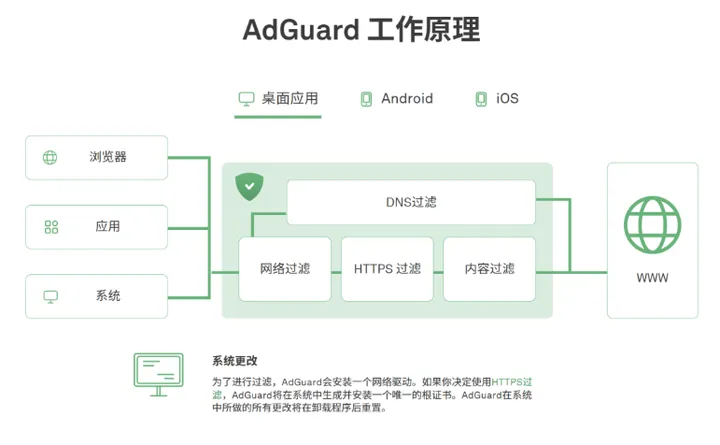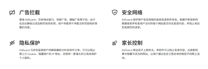 电脑版:Windows 版 AdGuard 内置「家长控制」模块,能有效屏蔽网络上的不良信息。支持自定义网站黑白名单,并可一键禁止下载可执行程序,全方位守护孩子的上网安全。