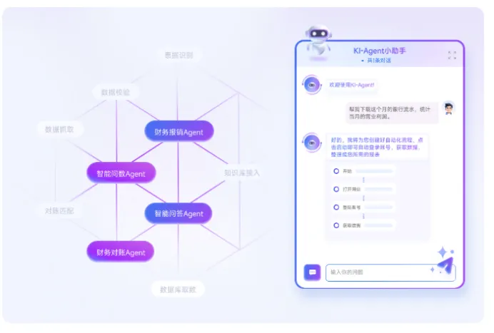 Ki-Agent S 平台:企业级智能体核心产品,可处理复杂任务、调用多工具、跨系统协作,并支持多 Agent 协同执行。