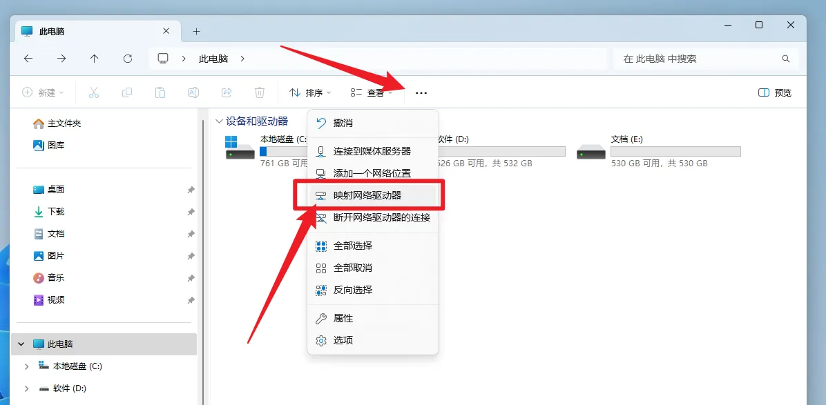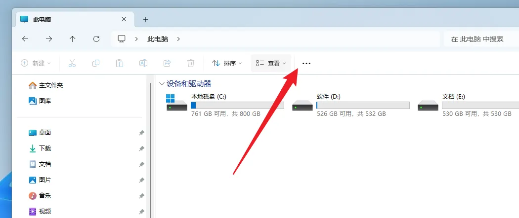 我们在某个学生电脑上 打开「此电脑」 顶部点 三个点