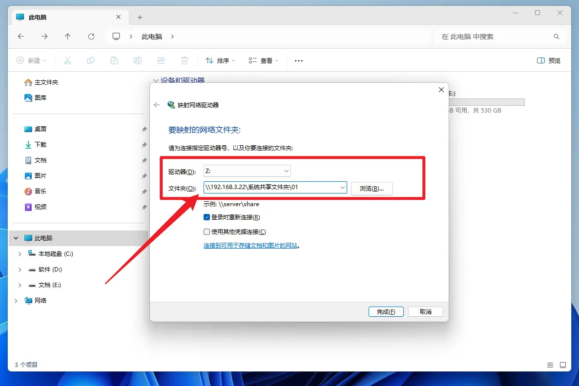 另外有一个非常关键问题就是,这样的共享必须用:映射网络驱动器