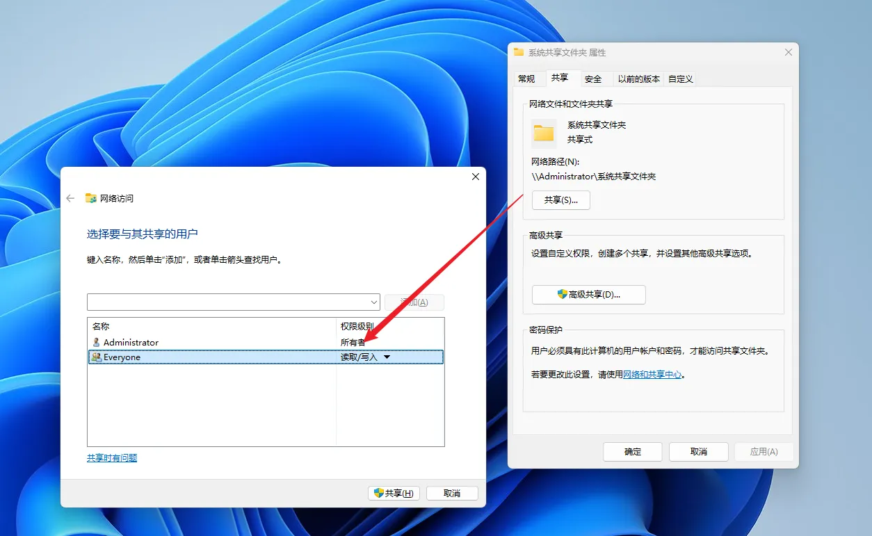 然后同样按照我们之前所讲解的共享方案, 进行共享设置
