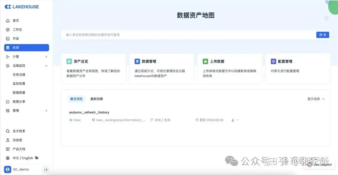 我们来看一个新一代云原生湖仓一体数据平台的产品的全景架构图: