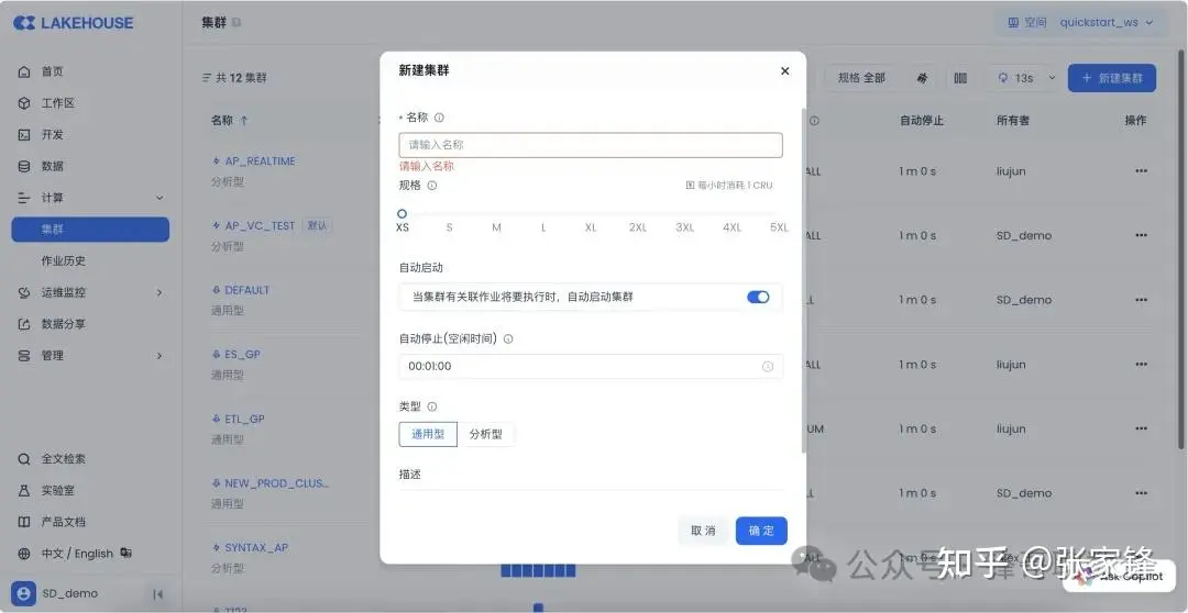 场景一:你每天要跑批作业,晚上两个小时跑完,我们这边你可以设置集群1分钟没有新的作业自动停止,停止就不计费,只收取你两个小时的费用,第二天跑批的时候,云器Lakehouse引擎一秒自动拉起集群