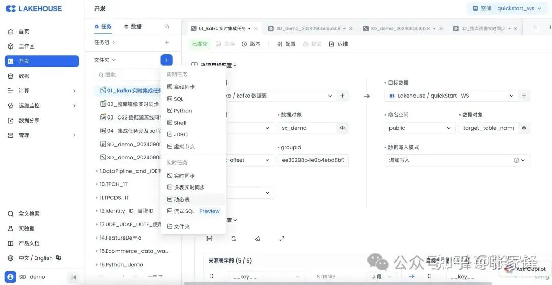 提供一站式可视化数据同步(包括实时同步,CDC数据同步),数据开发,任务调度及作业运维,可以平滑实现从开发环境到生产环境的无缝切换