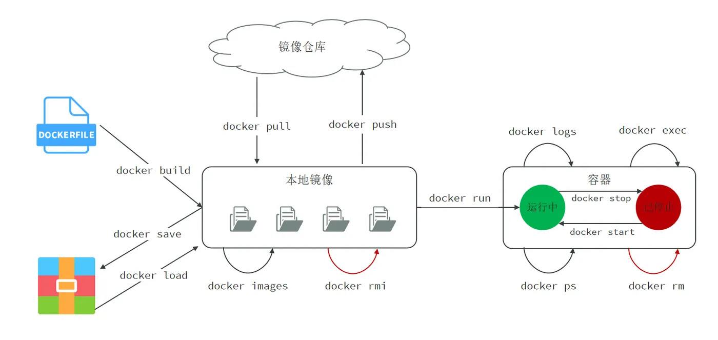 # 第1步,去DockerHub查看nginx镜像仓库及相关信息 # 第2步,拉取Nginx镜像 (比较耗时) docker pull nginx:1.20.2 # 第3步,查看镜像 docker images # 第4步,创建并允许Nginx容器 # 如果本地没有相应镜像,会直接从镜像仓库拉取镜像 docker run -d --name nginx -p 80:80 nginx # 第5步,查看运行中容器 docker ps # 也可以加格式化方式访问,格式会更加清爽 docker ps --format "table {{.ID}}\t{{.Image}}\t{{.Ports}}\t{{.Status}}\t{{.Names}}" # 第6步,访问网页,地址:http://虚拟机地址 # 第7步,停止容器 docker stop nginx # 第8步,查看所有容器 docker ps -a --format "table {{.ID}}\t{{.Image}}\t{{.Ports}}\t{{.Status}}\t{{.Names}}" # 第9步,再次启动nginx容器 docker start nginx # 第10步,再次查看容器 docker ps --format "table {{.ID}}\t{{.Image}}\t{{.Ports}}\t{{.Status}}\t{{.Names}}" # 第11步,查看容器详细信息 docker inspect nginx # 第12步,进入容器,查看容器内目录 docker exec -it nginx bash # 或者,可以进入MySQL docker exec -it mysql mysql -uroot -p # 第13步,删除容器 docker rm nginx # 发现无法删除,因为容器运行中,强制删除容器 docker rm -f nginx