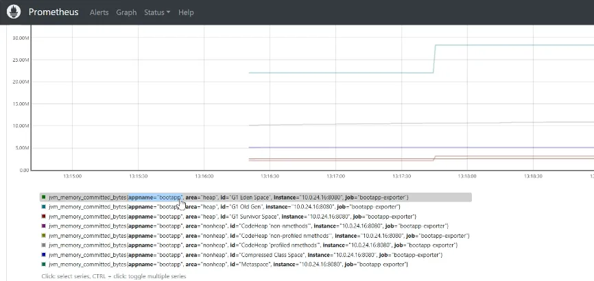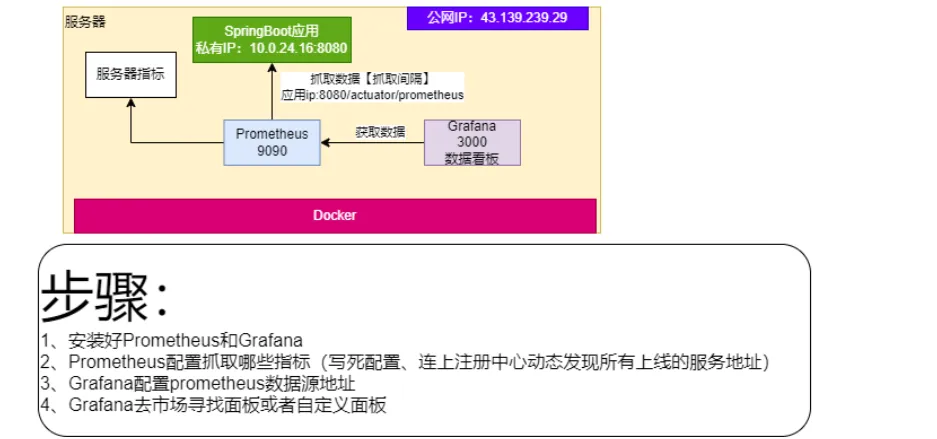 global : scrape_interval:15 #抓取配置 sevaluation_interval:15s #计算 scrape_configs: -job_name:'prometheus' #抓取自己指标 static_configs: -targets:['localhost:9090'] -job_name:'bootapp-exporter' metrics_path:'/actuator/prometheus' #指定抓取的路径 static_configs: -targets:['172.20.221.50:9090']# 注意改为服务器私有IP地址 labels : appname:'bootapp