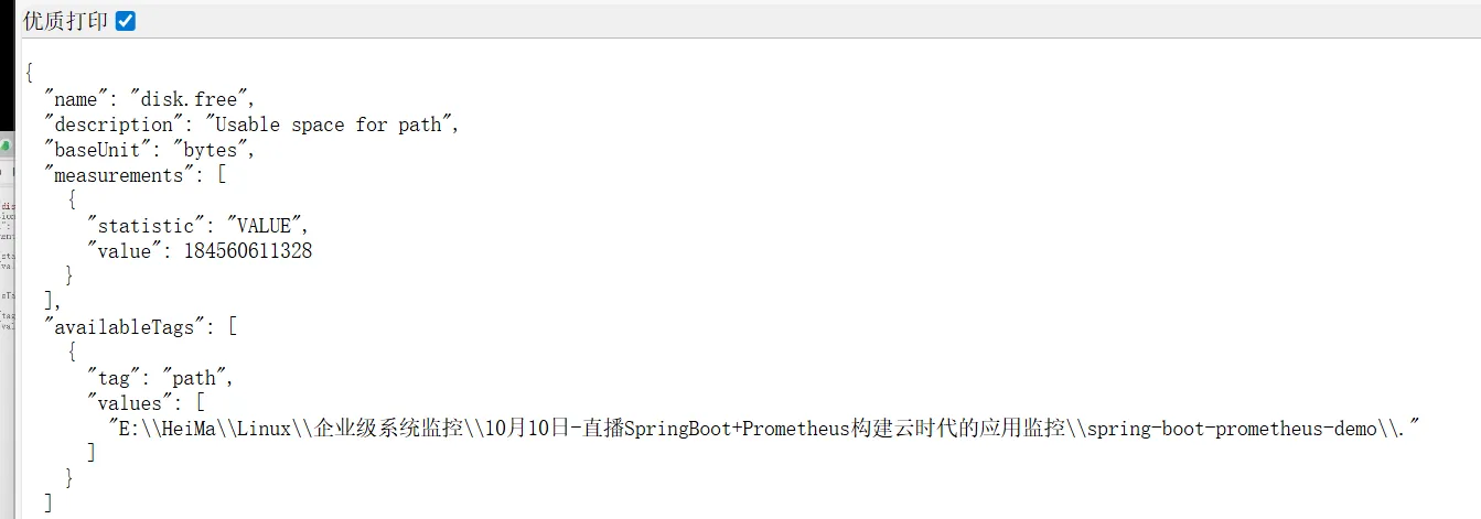 localhost:8080/actuator/metrics/disk.free