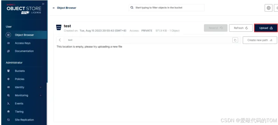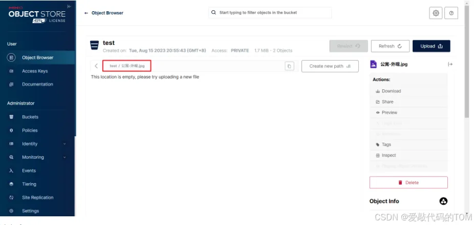 运行上述代码,然后查看MinIO管理页面,观察是否上传成功。