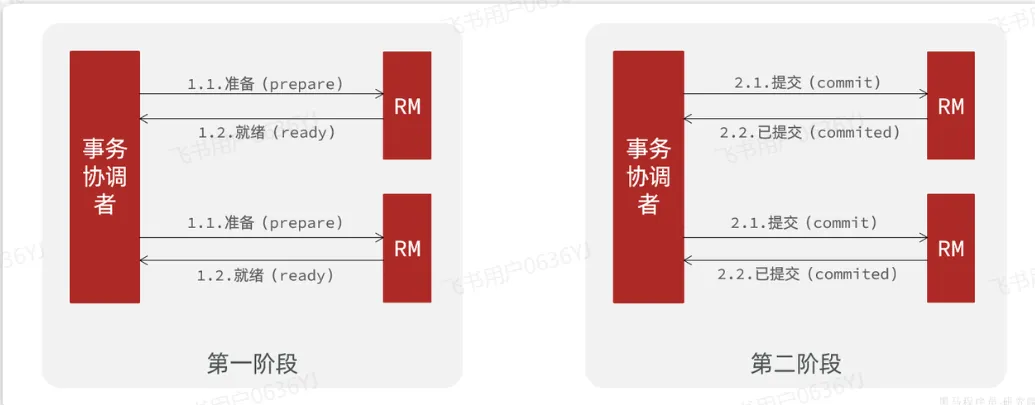 - 如果一阶段都成功,则通知所有事务参与者,提交事务