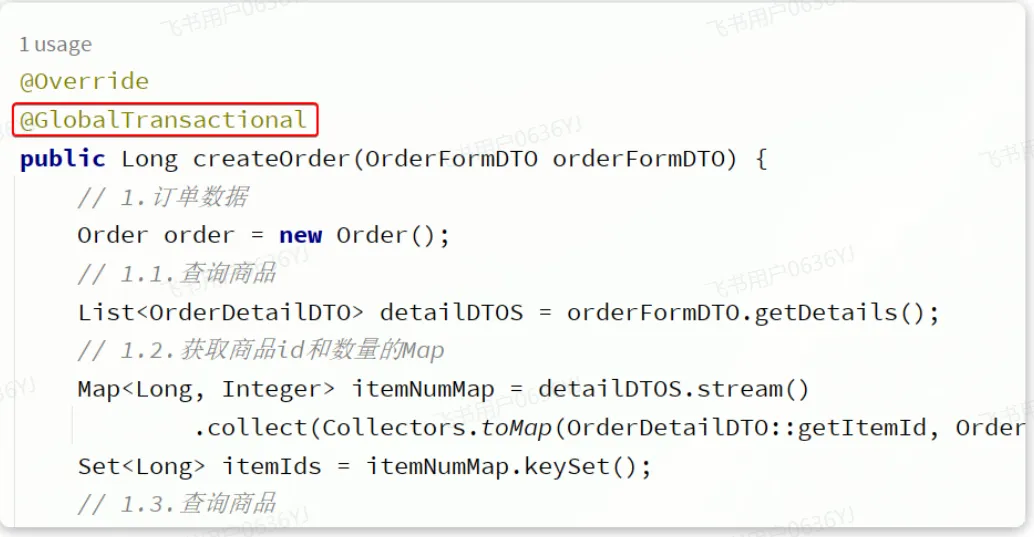 其次,我们要利用@GlobalTransactional标记分布式事务的入口方法: 编辑