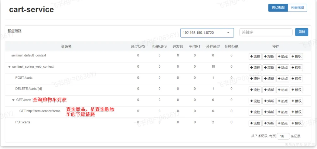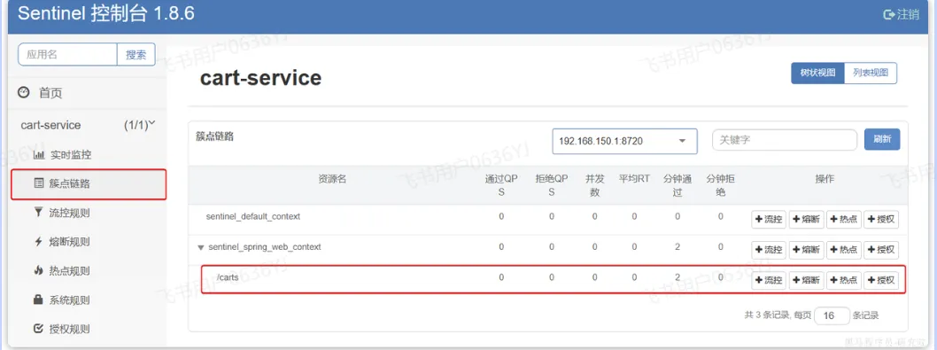 因此,我们看到/carts这个接口路径就是其中一个簇点,我们可以对其进行限流、熔断、隔离等保护措施。