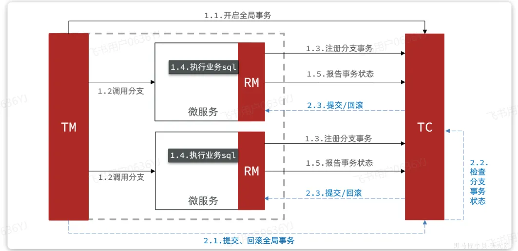 如果都成功,通知所有RM提交事务;如果有失败,通知所有RM回滚事务