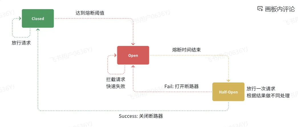 第二,由于查询商品的延迟较高(模拟的500ms),从而导致查询购物车的响应时间也变的很长。这样不仅拖慢了购物车服务,消耗了购物车服务的更多资源,而且用户体验也很差。对于商品服务这种不太健康的接口,我们应该直接停止调用,直接走降级逻辑,避免影响到当前服务。也就是将商品查询接口熔断。